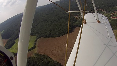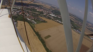 Let 9.7.2024 Více jak po roce další pokračování výcviku. Tentokrát byla hodně dlouhá přestávka. Bohužel moje zdraví odchází rychleji, než bych si přál. Využil jsem nabídky si vyzkoušet let na replice dvojplošníku. Bohužel interkom moc nefungoval, tak jsem si nemohl vyzkoušet řízení, protože bych se s instruktorem nedomluvil. Ale i tak to byl zajímavý zážitek, když vám kolem hlavy fičí vítr rychlostí kolem 170km/h. Měl jsem co dělat, abych udržel kameru. Udělali jsme okruh Slavkov, Bučovice a Vyškov, kde jsme provedli letmé přistání. LKTB Brno start dráha 09, přistání dráha 09. Letadlo dvojplošník Bücker 131 Jungmann - OK-BIO. Počasí skoro jasno, vítr JV o rychlosti 2m/s, poryvy 4m/s, teplota 30°C, dohlednost výborná. Mapa letuVidea z průběhu letu: (Videa jsou neupravovaná, jak je natočila kamera.) 1 část