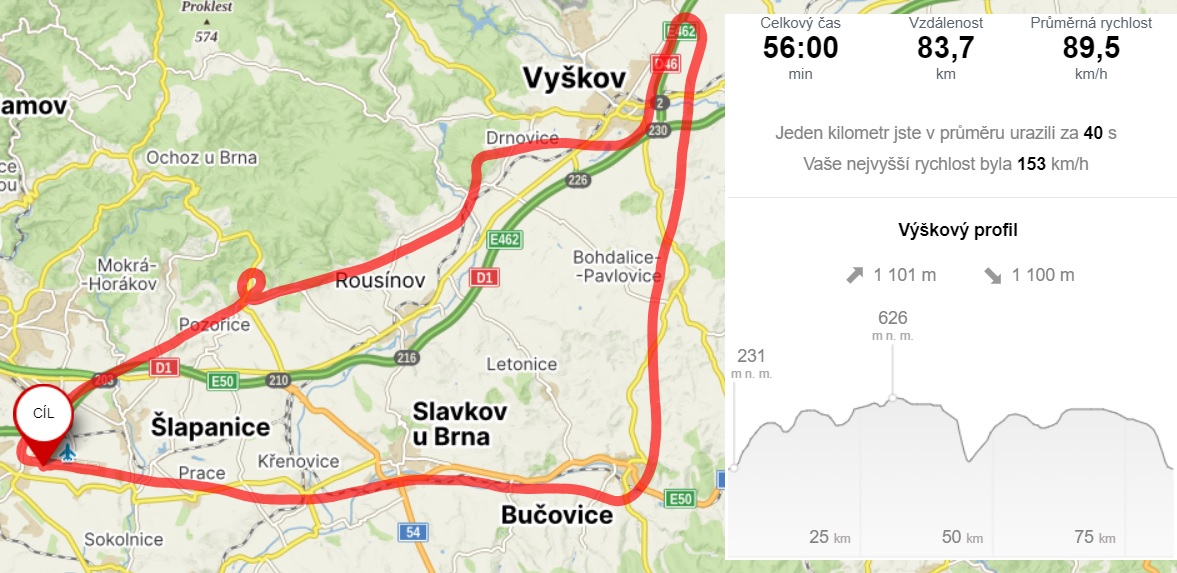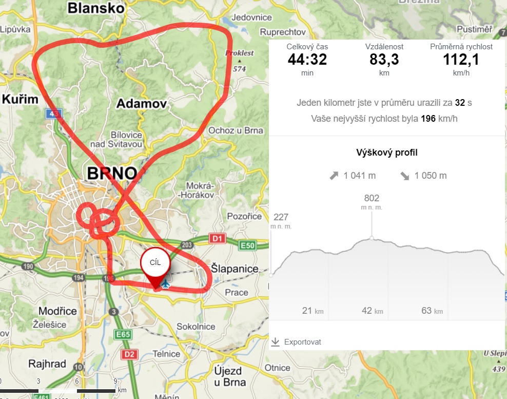 Celkový čas letů: 27:49 z toho ve výcviku 24:54. Počet startů 52. Videa jsou hodně dlouhá, neb je to záznam celého letu od startu po přistání. Postupně se je budu snažit uložit na YouTube. Dříve jsem mohl využívat server, který mi byl k dispozici, což dnes již nejde. Takže omluvte, pokud některá videa nebudou funkční. Let 21.9.2024 Tak další výcvikový let jsem absolvoval za měsíc po předešlém. Tak by to mělo být, aby člověk si fixoval naučené, protože při delším přerušení se můžou některé znalosti poztrácet. Sice instruktor mne ujišťoval u minulého letu, který jsem měl po roce a čtvrt, že jsem nic nezapomněl, ale možná mne jen chtěl uklidnit. Tentokrát vyšlo nádherně počasí a já mně let hned ráno jako první. Letěl jsem traťový let do Kroměříže a zpět. Cestou jsem si zakroužil nad Pornicemi, což je vesnička, kde jsem býval u prarodičů na prázdninách. Pro navigaci jsem použil mobil s GPS, dále jsem snažil i vést komunikaci s řízením provozu, kde bohužel mi právě chybí častější trénik. LKTB Brno start dráha 09, přistání dráha 09. Letadlo Cessna 152 - OK-BRQ. Počasí jasno, vítr V o rychlosti 2,5m/s (9km/h), poryvy 4,7m/s (17km/h), teplota 14°C, dohlednost výborná. Mapa letuVidea z průběhu letu: (Videa jsou neupravovaná, jak je natočila kamera. Ale tentokrát jsem zkrátil patnáctiminutové zahřívání motoru.) 1 část