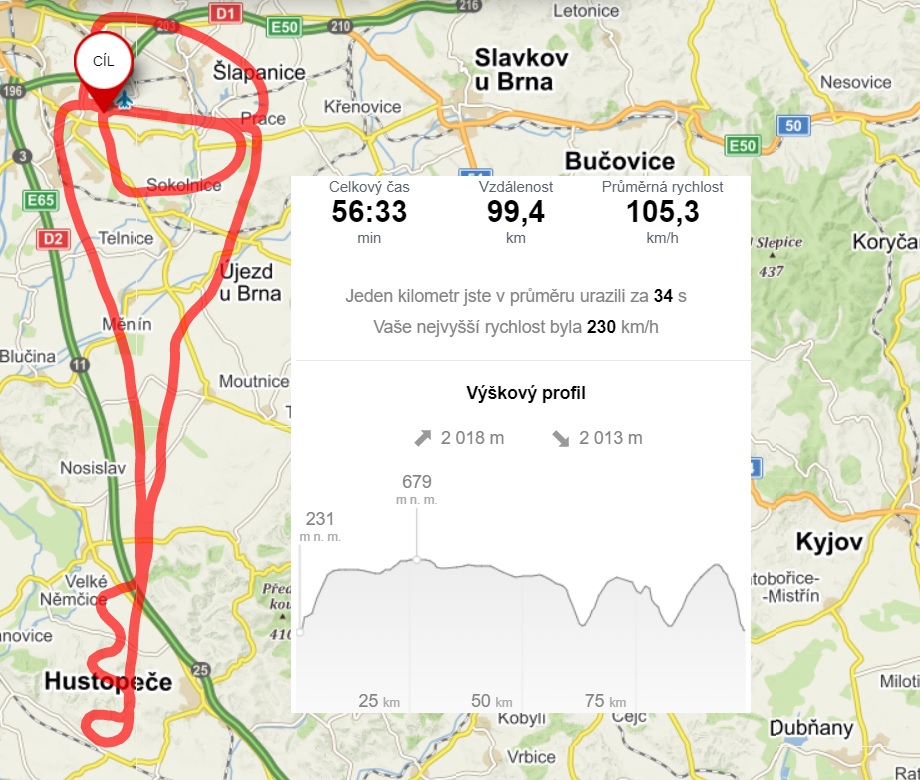 Let 30.8.2022 Po dvou měsicích další pokračování výcviku. Sice bych měl chodit lítat nejméně jednou měsíčně, ale na to jednak nejsou finance a také ne vždy vhodné počasí nebo čas. Start jsem měl v šest večer a to již v tuto dobu na konci prázdnin začíná se dříve stmívat. Opět jsme letěli nad Pálavská jezera, kde jsem nacvičoval přistání. Sice jsme původně chtěli dělat nácvik na účelovém letišti ULSTCH u Strachotína, ale byl tam nějaký provoz a tak jsme trénovali nad poli u Šakvic. LKTB Brno start dráha 09, přistání dráha 09. Letadlo Cessna 152 - OK-SCT. Počasí skoro polojasno, vítr V o rychlosti 3m/s, poryvy 7m/s teplota 25°C, dohlednost výborná. Mapa letuVidea z průběhu letu: (Videa jsou neupravovaná, jak je natočila kamera. Takže pokud jsou nezajímavé záběry při stání před startem, přeskočte je.) 1 díl 2 díl 3 díl 4 díl 5 díl Let 23.7.2022 Po dvouletém odkládání kvůli koroně jsem využil nabídky kamaráda, pilota motorového padáku, k vyzkoušení, jaké je to si zalétat na padáku, nebo správně řečeno na padákovém kluzáku. Padákový kluzák je zařízení pro sportovní létání, které nemá pevnou vnitřní konstrukci. Horní látková část padákového kluzáku (tzv. vrchlík) se prouděním vzduchu nafoukne do tvaru křídla a vytváří tak při pohybu vzduchem vztlakovou sílu, která je pomocí závěsných lan přenášena na postroj pilota. Pomocí padákových kluzáků se provozuje paragliding. Na padáku se dá létat různě. Buď je zavěšen jen pilot, který využívá stoupavého vzdušného proudění k letu, podobně jako kluzáky, často nazývané větroně, či plachťáky. Další možností je motorový paragliding, kde pro létání nepotřebujete kopec ani termické stoupavé proudy. Můžete si vybrat jednu ze dvou možností. Jedna možnost je, že má pilot na zádech zavěšený motor s tlačnou vrtulí k získaní výšky. Hmotnost takové motorové krosny je kolem 23–28 kg, což není málo. Pro bezpečný vzlet je také velmi důležitá dostatečná rychlost rozběhu, což s pětadvacetikilovým závažím na zádech není nic snadného. Druhou možností je, že pilot motorového padákového kluzáku používá tříkolku, ve které pohodlně sedí už před startem. Tříkolka poskytne možnost dostat se do vzduchu i těm, kteří se nedokážou rozběhnout s motorovou krosnou na zádech, možná z důvodu pokročilejšího věku, nebo i těm, kteří to považují za pohodlnější způsob startu. Kolega má právě tu tříkolku, takže může vzít sebou druhého pasažéra. Tak v sobotu brzy ráno, to je doba, kdy většinou nefouká, jsem dojel do Medlánek, kde se start uskutečnil. LKCM Medlánky start dráha 16, přistání dráha 34. Motorový padákový kluzák - OK-ZMT08. Počasí skoro jasno, vítr JZ o rychlosti 1m/s, poryvy 0m/s teplota 20°C, dohlednost výborná. Mapa letuVidea z průběhu letu: (Videa jsou neupravovaná, jak je natočila kamera. Takže pokud jsou nezajímavé záběry, přeskočte je.) 1 díl 2 díl 3 díl Let 27.6.2022 Po dvouměsíčním přerušení výcviku jsem si domluvil let na pozdní odpolední hodinu, kdy jsem předpokládal utišení větru a menší teplotu. V pátek tomu tak bylo, bohužel v pondělí bylo vše jinak. Jednak foukal poměrně silný vítr a to ještě téměř kolmo na dráhu. Dalším nepříjemným jevem byla vysoká teplota. Instruktor byl již za celé odpoledne z té vysoké teploty dost utahaný, tak jsme si domluvili krátký let kolem Brna abych si osvěžil postupy. Při návratu jsme museli chvíli vyčkávat a tak jsem kroužil nad městem. LKTB Brno start dráha 09, přistání dráha 09. Letadlo Cessna 152 - OK-BKN. Počasí skoro jasno, vítr JV o rychlosti 5m/s, poryvy 10m/s teplota 30°C, dohlednost výborná. Mapa letuVidea z průběhu letu: Bohužel nefungovala kamera, což je zvlášť nepříjemné, protože let shodou okolností byl většinou nad Brnem. Let 29.4.2022 Počasí je již celkem jarní a tak další let. Měl jsem domluvenou odpolední hodinu, bylo polojasno, teplo tak akorát, sluníčko svítilo přerušovaně, ale přesto se tvořily oblaky a pod nimi stoupavé proudy, takže letadlo dost házelo. Opět jsme letěli nad Pálavská jezera, kde jsem trénoval pomalý let na hranici pádové rychlosti. Samozřejmě také zatáčky, abych držel horizont. Ono při zatáčce letadlo padá po křídle, takže klesá. Dále jsem si nacvičoval sestupovou dráhu, jako bych chtěl přistát na vybraný bod. LKTB Brno start dráha 09, přistání dráha 09. Letadlo Cessna 152 - OK-GTN. Počasí polojasno, vítr V o rychlosti 3 m/s, poryvy 5 m/s, teplota 17°C, dohlednost výborná. Mapa letuVidea z průběhu letu: (Videa jsou neupravovaná, jak je natočila kamera. Takže pokud jsou nezajímavé záběry při stání před startem, přeskočte je.) 1 díl 2 díl 3 díl 4 díl 5 díl Let 19.2.2022 V novém roce můj první let. Bohužel počasí bylo na hraně létání. Lety se plánují týden dopředu, takže počasí se tak přesně nedá předpovědět. Právě tento týden byl hodně větrný, prošlo několik silných vichřic a ještě i v sobotu dost foukalo. Po mně byl ještě jeden krátký let a další byly již zrušeny. U Pálavy jsem trénoval pády a potom jsem měl několik okruhů s letmým přistáním na letišti v Brně. LKTB Brno start dráha 27, přistání dráha 27. Letadlo Cessna 152 - OK-ETA. Počasí skoro jasno, vítr Z o rychlosti 8 m/s, poryvy 20 m/s, teplota 8°C, dohlednost výborná. Mapa letuVidea z průběhu letu: (Videa jsou neupravovaná, jak je natočila kamera. Takže pokud jsou nezajímavé záběry při stání před startem, přeskočte je.) 1 díl 2 díl 3 díl 4 díl Let 20.11.2021 Na poslední chvíli, pravděpodobně posledního letu tento rok, jsem si domluvil let na sobotu po obědě. Ráno bylo hezky slu