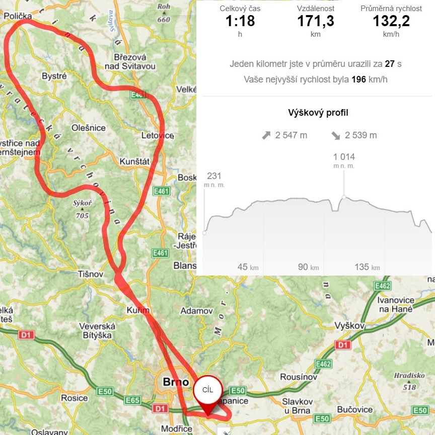 Let 27.5.2023 Po dlouhé době devíti měsíců další pokračování výcviku. Tentokrát byla hodně dlouhá přestávka. Nějak to nevycházelo, v zimě jsem neměl zájem a na jaře bylo dost deštivo, takže často byla uzavřená dráha pro vstup na betonovou startovací dráhu. No nakonec vyšlo počasí, instruktor měl na mne čas a tak jsem mohl hned z rána si udělat další let. Naplánoval jsem navigační let do Poličky a zpět. Bohužel mne zklamala digitální navigace, mám starší tablet Apple a dostal jsem zprávu, že mapy již nejsou licencované. To se potvrdilo, neb u Kuřimi navigace přestala fungovat. Tak jsme letěli dle vlastních znalostí s občasnou kontrolou mapy. Nakonec Poličku jsme trefili a do Brna se také vrátili. Bohužel jsem ale neproletěl naplánované body, které mne zajímaly. Pro příště si musím připravit i mapové podklady podrobnější. LKTB Brno start dráha 09, přistání dráha 09. Letadlo Cessna F152 - OK-VIS. Počasí skoro jasno, vítr SV o rychlosti 4m/s, poryvy 8m/s teplota 16°C, dohlednost výborná. Mapa letuVidea z průběhu letu: (Videa jsou neupravovaná, jak je natočila kamera.) 1 část